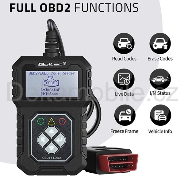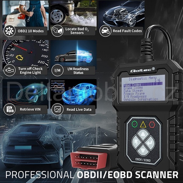Vlastnosti: Čtení a mazání chybových kódů motoru (DTC) Zhasnutí kontrolky motoru (MIL) Zobrazení dat ze senzorů v reálném čase (Live Data) Analýza dat zmrazeného obrazu Kontrola stavu připravenosti I/M (např. pro MOT)