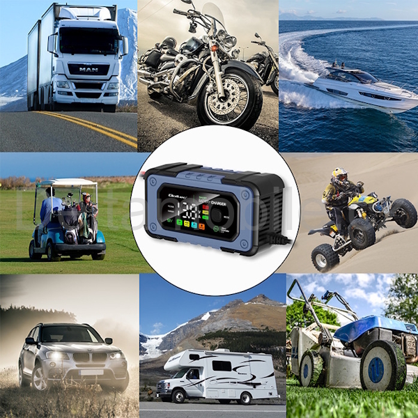 Doba potřebná k nabití závisí na rychlosti vybíjení baterie a její skutečné kapacitě . Nabíječka je určena k nabíjení baterií v automobilech, motocyklech, lodích, sekačkách na trávu, zemědělských vozidlech a čtyřkolkách.