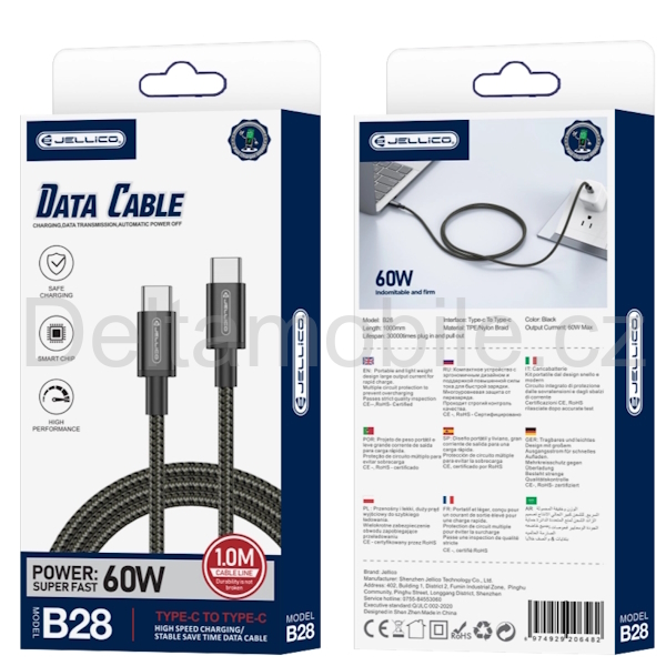 USB-C na USB-C 60W kabel JELLICO B28 1m