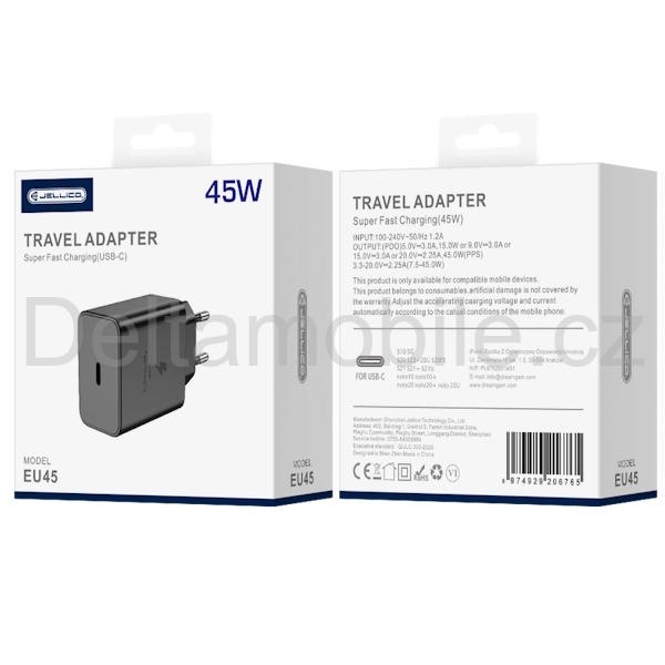 USB-C rychlá nabíječka GaN PD 45W JELLICO EU45